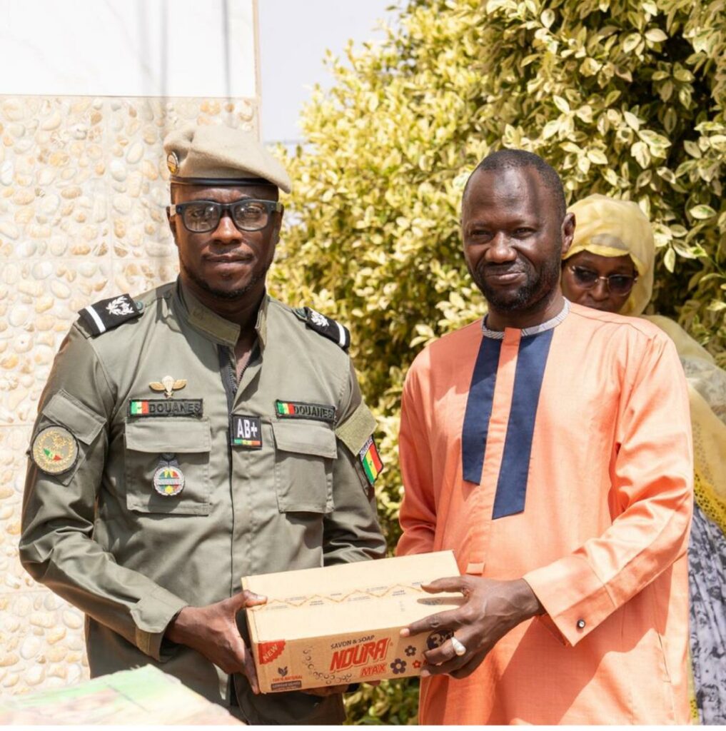 La délégation a été conduite par le Directeur régional des Douanes du Centre, le Colonel Ibrahima THIAM en compagnie du Chef de la Division de la Communication et des Relations publiques, le Lieutenant-colonel Mouhamed NIANG, le Chef de la Subdivision des Douanes de Kaolack, le Lieutenant-colonel Pierre SYLVA et d’autres Chefs locaux.