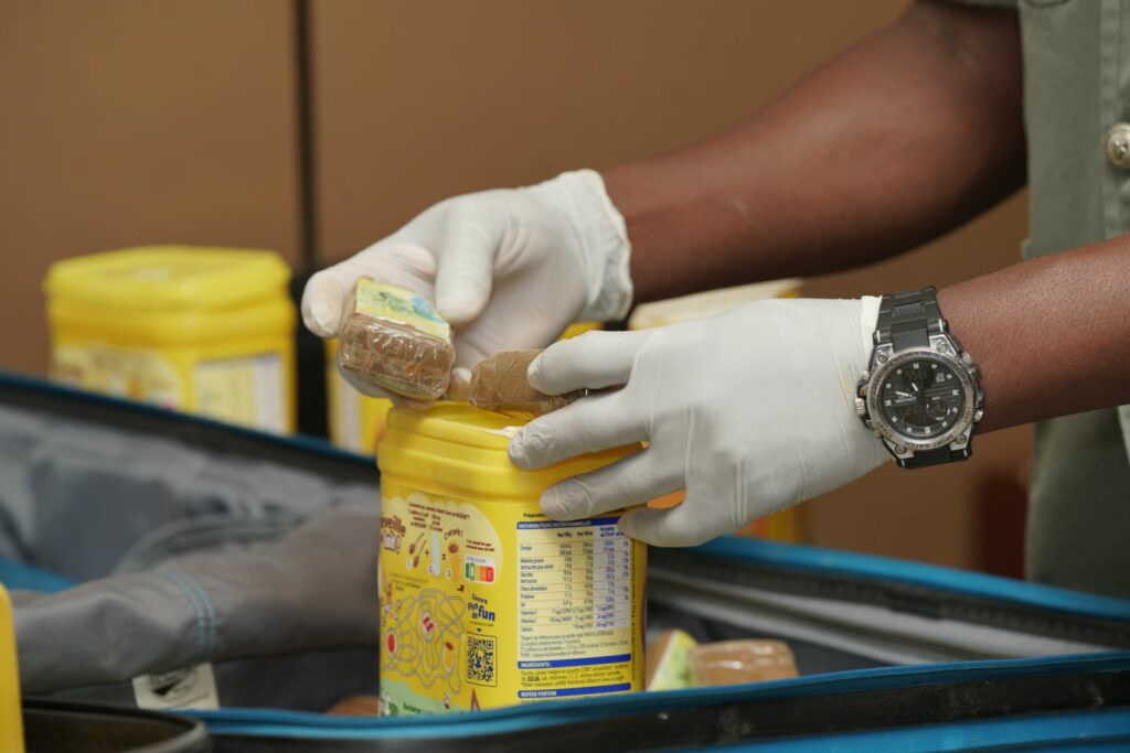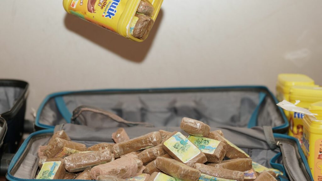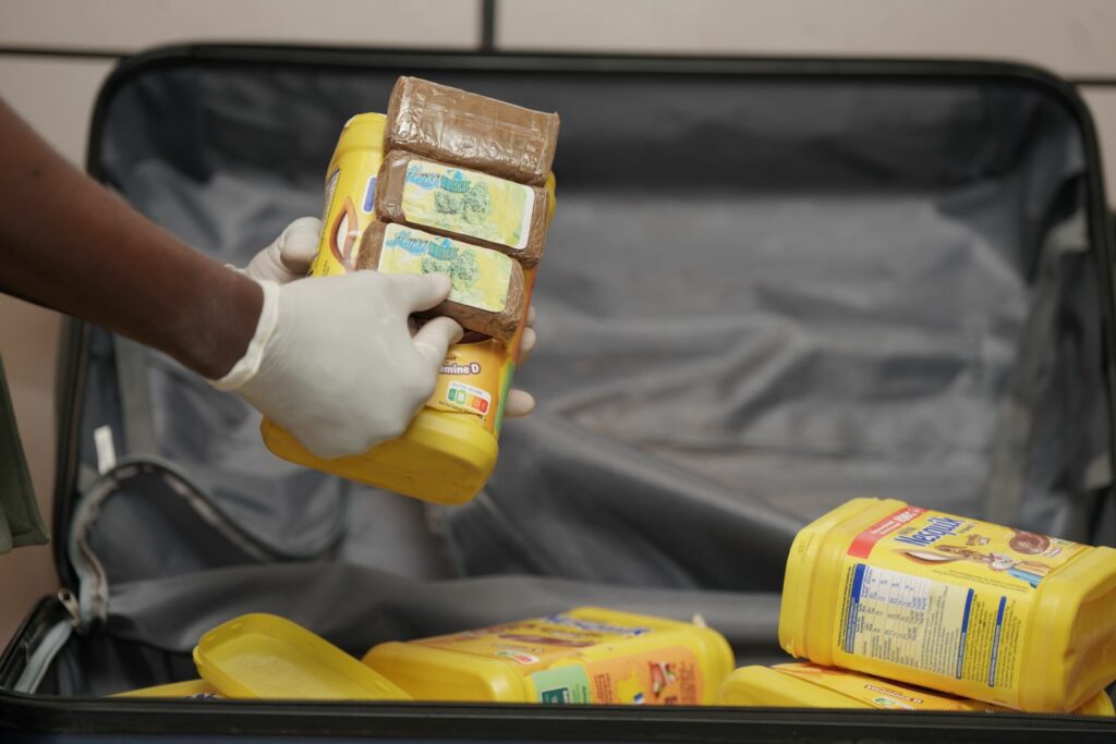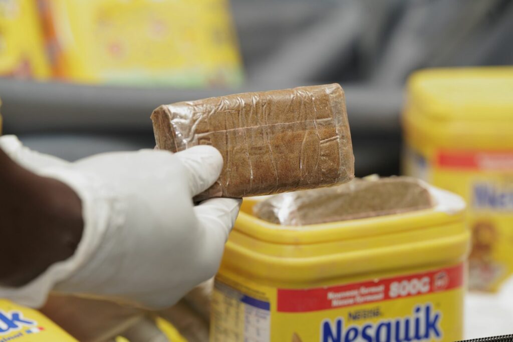 La drogue était dissimulée dans des pots de Nesquik découverts dans les bagages de deux dames de nationalité sénégalaise en provenance de Paris.