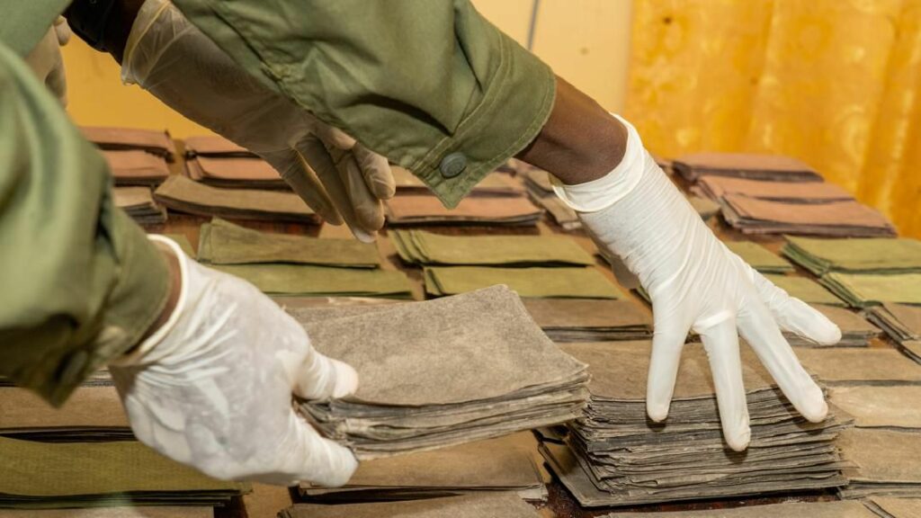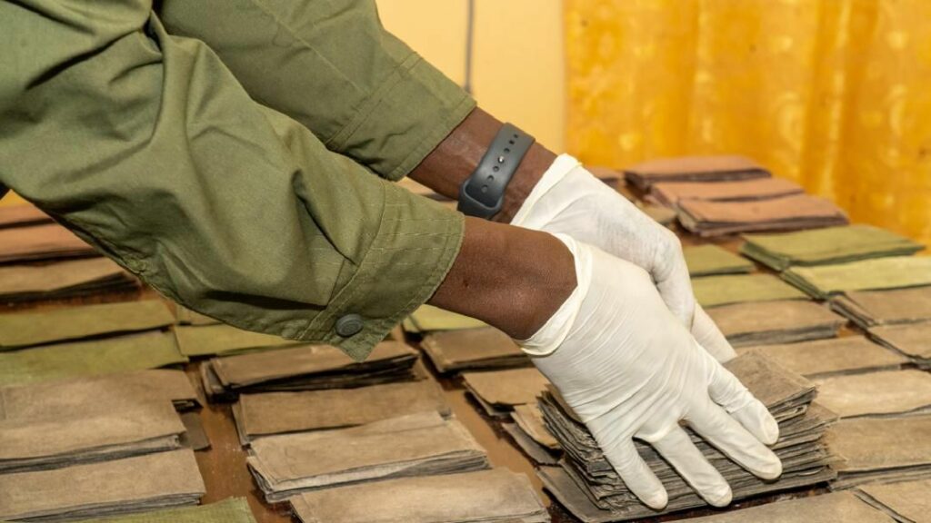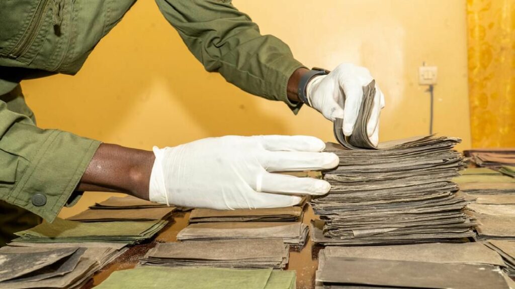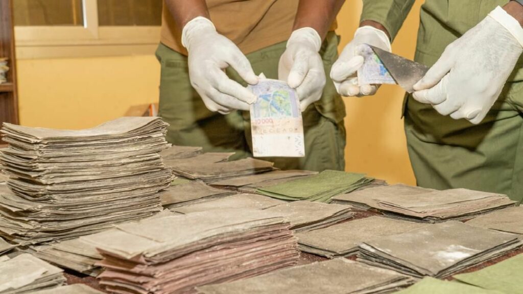 Il s’agit de 695 coupures de billets noirs de 100 Dollars et de 2931 coupures de billets noirs de 500 Euros pour une contrevaleur totale estimée à 1 001 057 125 francs CFA.
